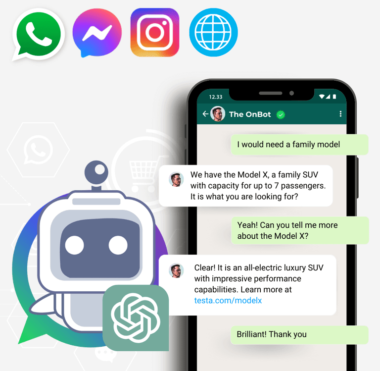 Automatiza ventas y atención con bots inteligentes en WhatsApp y más.